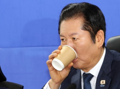 더불어민주당 정청래 대표가 2026년 2월10일 국회 의원회관에서 재선 의원들과 함께한 간담회에서 커피를 마시며 목을 축이고 있다.정청래 더불어민주당 대표는 2026년 2월10일 ‘지방선거 전 조국혁신당과의 합당 추진 중단’을 발표하며 “통합 논란보다 화합이 더 시급하다고 생각했다”고 이유를 밝혔다. ‘절차적 문제’ 제기로 시작된 합당 반대 목소리가 ‘내전’ 상황을 방불케 하는 상황으로까지 확장되면서, 두 당의 통합을 통한 상승작용으로 이어지지 않을 것이란 목소리를 수용한 것이다. 이로써 합당 여부를 둘러싼 민주당 내 논의는 일단락됐지만, 당내 권력투쟁이 가감 없이 노출되면서 후유증은 한동안 이어질 것으로 보인다.이날 정 대표의 발표는 저녁 8시 열린 긴급 최고위원회의 뒤 이뤄졌다. 정 대표는 “혁신당과 통합을 제안한 것은 오직 지방선거 승리와 이재명 정부 성공을 위한 충정이었다”면서도 “통합 제안이 당 안팎에서 많은 우려와 걱정을 가져왔고, 통합을 통한 상승작용에도 어려움이 생긴 것이 사실”이라고 인정했다.실제로 이날 ‘합당 중단’ 발표까지 19일간 지속돼온 혼돈 상황으로 여당 내 권력투쟁이 고스란히 노출됐다. ‘반청 3인방’ 이언주·황명선·강득구 최고위원 등이 ‘절차적 문제’를 제기한 데 이어, 지방선거를 앞두고 광역단체장 출마를 준비하는 일부 의원이 ‘친청 대 반청’ 구도를 경선에 활용하기 위해 합당 반대론에 섰고, 기초자치단체장 출마를 준비하는 원외 세력(더민주전국혁신회의), 지역 기반이 취약한 비례·초선 의원들이 여기에 가세하며 논란이 커졌다.합당에 반대하는 성명과 기자회견, 서명운동이 이어졌고 이런 당내 혼란상을 우려한 관망파들도 ‘합당에는 찬성하나 지금은 아니다’라는 쪽으로 기울었다. 이날 오전 10시부터 2시간 남짓 진행된 의원총회에서도 발언한 20여 명 가운데 지방선거 전 합당을 주장한 건 김영진 의원 정도로 알려졌다. 나머지는 “혁신당과는 선거연대를 하고 합당은 지방선거 뒤로 미루자” “합당 논의는 미루더라도 합당을 위한 준비기구는 구성하자”는 의견 등이 나왔다고 한다. 이런 흐름에 ‘친청 당권파’가 주도한 ‘쌍방울 변호사’ 2차 특검 후보 추천은 결정타가 됐다. 정 대표 쪽에 남은 카드는 ‘질서 있는 퇴각’뿐이었다.정 대표는 다만 “‘강은 바다를 포기하지 않는다’는 노무현 전 대통령의 말씀이 생각난다”며 “통합이 승리와 성공을 뒷받침할 것이라는 믿음만은 변함이 없다”고 강조했다. 당내 화합을 위해 통합 논의를 일단 중단하지만, 통합준비추진위원회를 꾸려 지방선거 이후 다시 합당 논의를 재추진하겠다는 뜻을 분명히 밝힌 것이다. 하지만 이언주 민주당 최고위원은 회의 뒤 기자들을 만나 “(지방선거 뒤) 그때 가서 같이할 수도 있겠지만 그것은 아직은 모르는 것”이라고 말했다. ‘선명 개혁’을 표방한 혁신당과의 연대·통합이 ‘중도 확장 전략’이 가장 절실한 지방선거에는 도움이 되지 않을 것이라며 견제구를 던진 것이다.이런 가운데, 최고위 결정 사항이 발표되기도 전인 이날 오후 강득구 최고위원이 페이스북에 올렸다가 삭제한 글이 당 안팎에서 미묘한 파장을 불러왔다. 강 최고위원은 “홍익표 정무수석을 만났다. 지방선거 이후 합당을 하고 전당대회는 통합 전당대회로 했으면 하는 것이 대통령 바람이라고 한다. 바로 합당에 관한 수임기구를 준비했으면 좋겠다라는 대통령의 입장까지 전달받았다”고 적었다. 사실상 이날 최고위에서 발표한 내용과 거의 같아, 청와대의 뜻에 따라 이뤄진 것처럼 읽힐 수도 있는 대목이다. 강 의원은 해당 글을 올린 이유에 대해 입을 닫았고, 청와대 쪽에서도 “합당은 당이 결정할 사안이며 청와대는 합당과 관련해 입장이 없다”고만 밝혔다.