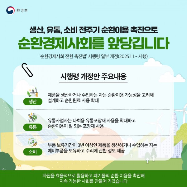 관련 규제를 개선하거나 보완하는 제도이다. 순환경제 규제특례는 ‘순환경제사회 전환 촉진법’ 시행(‘24.1.1)에 따라 스마트시티, 정보통신융합 등