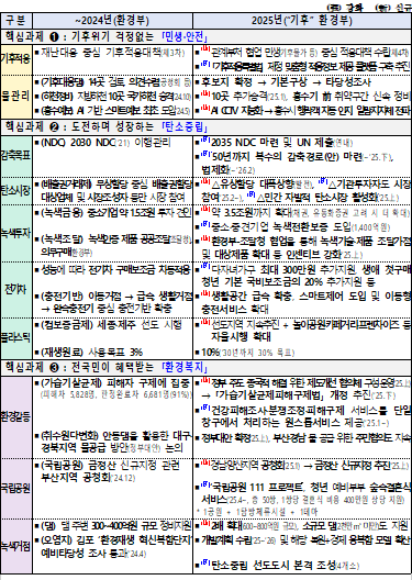 환경부는 그간의 환경정책 성과를 확산하고, 국민이 체감하는 가시적 효과로 이어질 수 있도록 2025년 업무계획을 수립했다. 특히, 일상화된 기후 위기로부터 민생․안전과