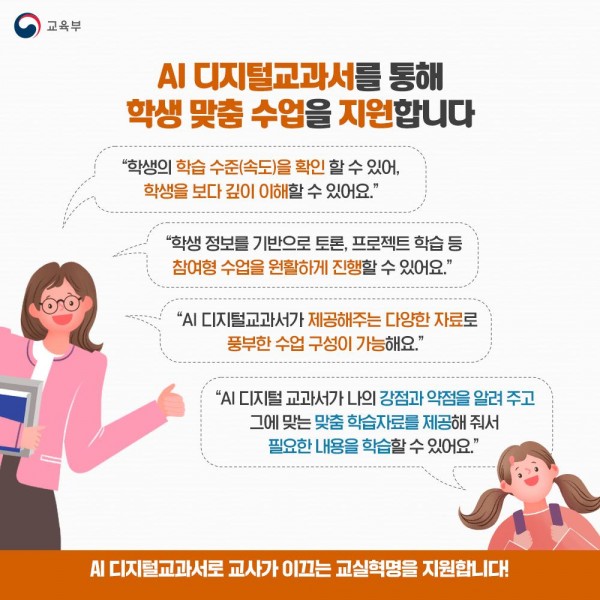 AI 디지털교과서를 통해 학생 맞춤 수업을 지원합니다
