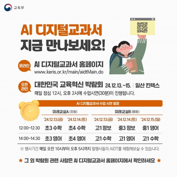 그 외 박람회 관련 사항은 AI 디지털교과서 홈페이지에서 확인하세요