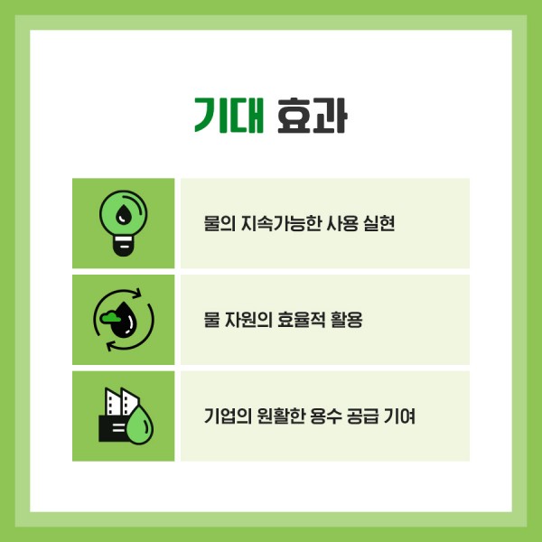 이를 통해 첨단산업의 필수 자원인 물의 지속가능한 사용을 실현하고, 물 자원의 효율적 활용과 함께 기업의 원활한 용수 공급에 기여할 것으로 기대된다.