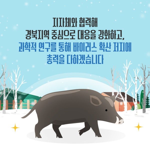 신동인 국립야생동물질병관리원장은 “성공적인 아프리카돼지열병 확산 차단을 위해서는 겨울철 철저한 방역 태세 유지가 중요하다”라면서, “