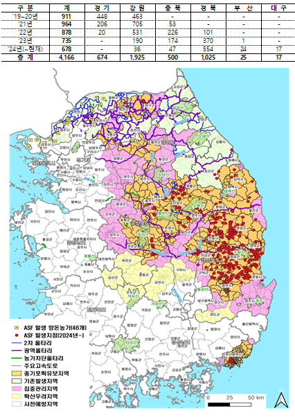 (‘24년) 의성군(’24.1), 군위군(‘24.6) 발생 그 결과, 올해 6월 군위군(대구)을 끝으로 현재까지 인근 지자체로 추가적인 확산은
