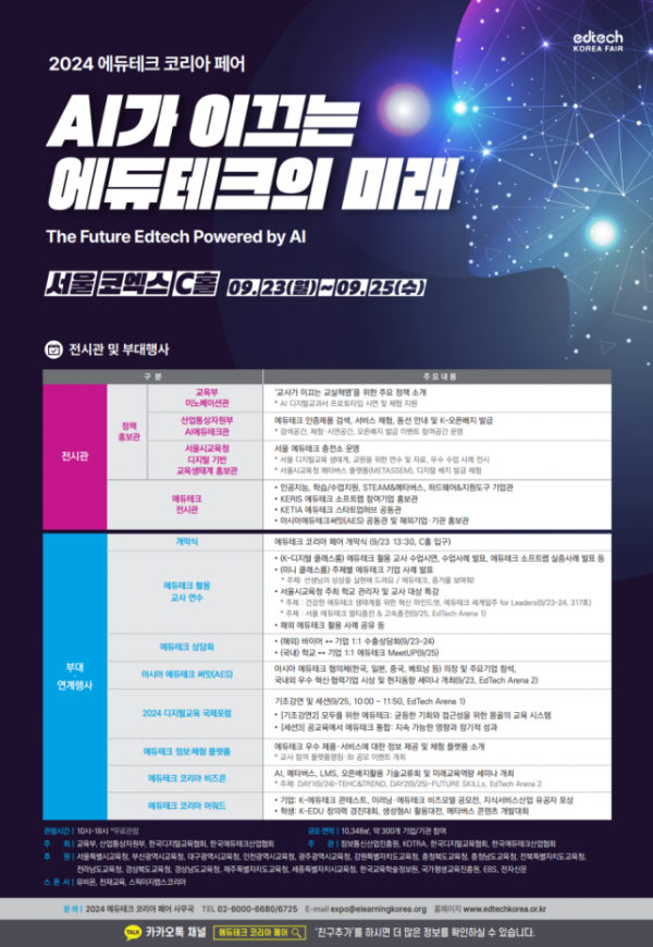 우수한 교육 정보 기술(에듀테크)을 국내외에 홍보하는 「2024 에듀테크 코리아 박람회(페어)」를 9월 23일(월)부터 25일(수)까지