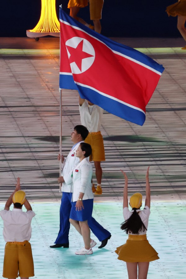 북한 선수단 기수는 여자 복싱 방철미와 남자 사격 박명원이 맡았다. 방철미는 2018년과 2021년, 2022년 북한의 ‘10대 최우수 선수’로 선정된 복싱 영웅이다. 박명원은 2010년 광저우 아시안게임에서 남자 10m러닝 타깃 혼합 개인전과 단체전 2관왕을 차지한 바 있다.