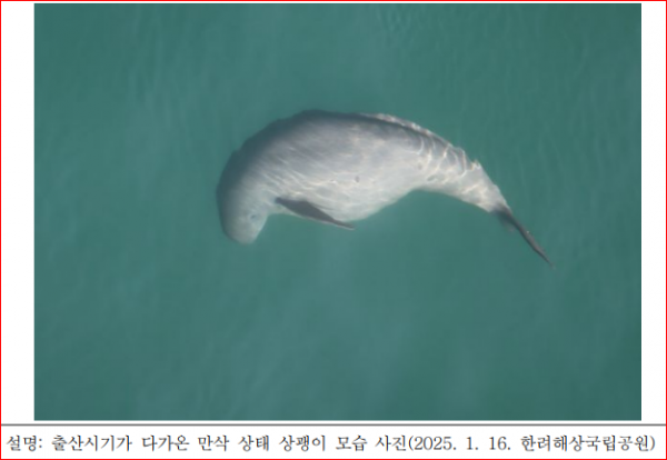 특히 출산을 앞둔 만삭 상태의 모습과 출산 후 어미가 갓 태어난 새끼를 양육하는 장면은 해양 포유류인 상괭이의 전반적인 생애활동을 확인했다는 점에서 의미가 있다.