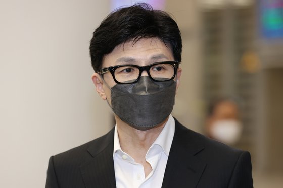 한동훈 법무부 장관이 7일 오후 인천국제공항 제2터미널에서 지난달 29일 시작한 방미 일정을 마치고 귀국, 취재진 질문에 답하고 있다.