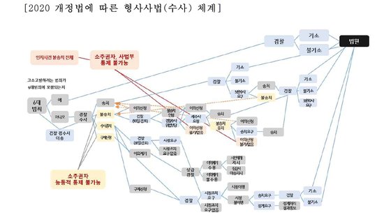 수사권 조정으로 국민이 신속하게 재판을 받을 권리가 침해된다는 것도 위헌의 근거로 제시했다. 법무부는 “2020년 개정 이후 형사사법절차는 기존 대비 지나치게 복잡한 절차로 법률적 조언을 받지 않고서는 정상적인 형사절차 진행이 어려울 정도가 됐다”며 “법률 전문가들조차 제대로 숙지하기 어려울 정도라는 평가를 받고 있다”고 비판했다.