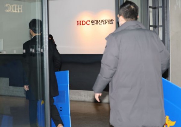 19일 오전 고용노동부,경찰 관계자들이 광주 서구 화정아이파크 붕괴사고와 관련해 서울 용산구 현대산업개발 본사 압수수색을 집행하고 있다.