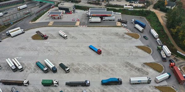 요소수 넣으려는 트럭들 긴 줄 - 4일 오후 경기 평택의 한 고속도로 휴게소 주유소에서 요소수를 넣기 위해 기다리는 화물차 등 경유 차량이 길게 줄 지어 서 있다. 중국이 요소 수출을 중단하자, 중국산에 원료 대부분을 의존해왔던 국내 요소수 시장이 마비되면서 곳곳에서 품귀 현상이 벌어지고 있다.