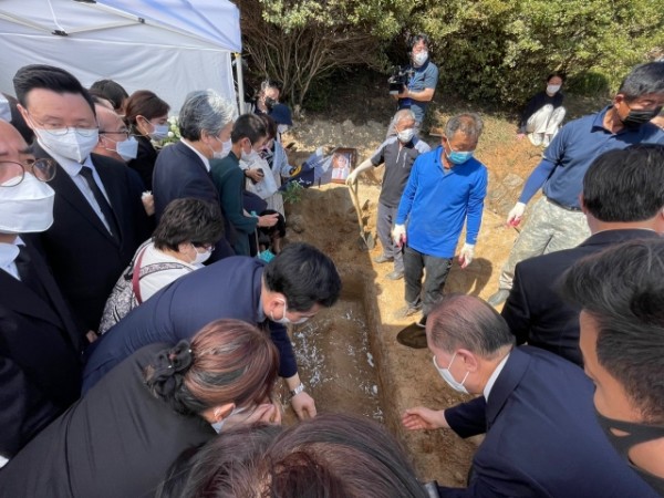 하관 예배는 최자실 목사(1915~1989), 김성혜 사모(1942~2021)의 묘소 옆에 마련된 터에서 드려졌다. 묘소는 공원묘지 입구에서 봤을 때 중간 부분 좌측 끝으로 일반 묘소와 넓이 차이가 없다.
