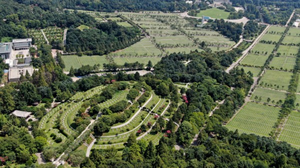 국립서울현충원 전경. 마치 군인이 계급별로 줄지어 서 있는 모습이다.
