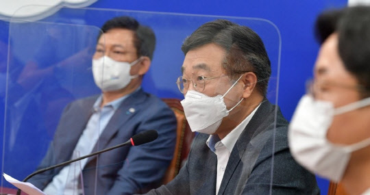 더불어민주당 윤호중(사진) 원내대표가 26일 국회에서 열린 최고위원회의에서 발언하고 있다.
