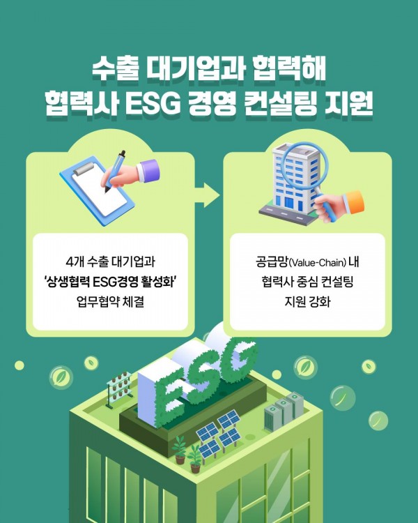 올해 ‘친환경경영(ESG) 상담(컨설팅) 지원사업’은 전년 대비 약 30% 많은 170여 개 기업에 상담(컨설팅)을 제공하여 ‘환경·사회·투명 경영’ 대응에 어려움을