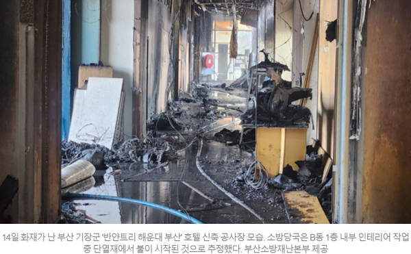 14일 소방청은 이날 오후 6시7분 부산 기장군 리조트 신축 공사장 화재 대응단계가 해제됐다고 밝혔다. 앞서 소방당국은