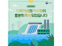 환경부는 전국 20개 다목적댐 저수량 예년 대비 127% 수준… 용수공급 문제없어