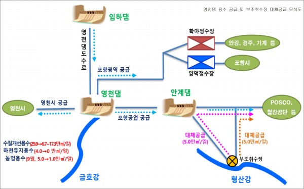 또한, 임하댐과의 연계 운영을 통해 영천댐에서 공급하는 금호강 수질개선용수(25.9만톤/일)를 9월 관개용수 사용 여건 등을