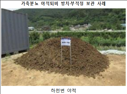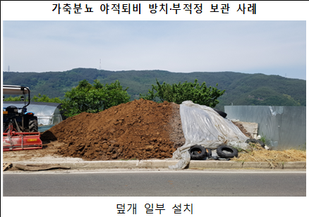 올해 조사에서 파악된 약 1,500개의 야적퇴비(4월말 기준, 전년 대비 약 60% 증가)에 대해 수거·이전·덮개 씌우기 등의 방식으로 집중 관리할 계획이며 이와 동시에 적정