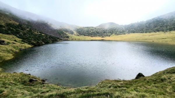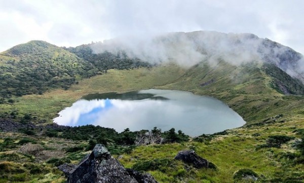 추석에 보름달이 차듯 한라산 최정상 백록담분화구에는 물이 가득 찼다.