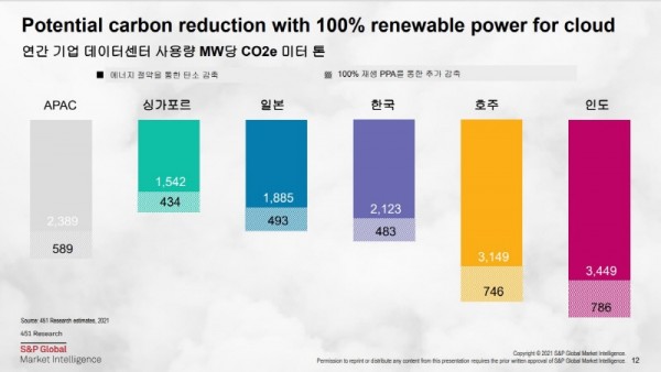더욱이 한국은 아직 서버 가상화와 클라우드 전환과 워크로드 통합, 서버 가용비율도 미국, 아시아 지역에 비해서도 낮은 상황이어서 클라우드 전환으로 인한 에너지 절감과 효율성 확보 잠재력이 크다는 게 AWS와 451 리서치의 분석이다.