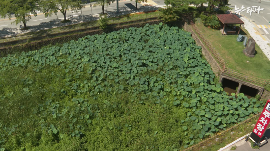 송장배미 습지는 대표적 수질 정화식물로 잘 알려진 다년생 풀인 부들과 연이 가득했다. 습지 주변에는 안전을 위해 철제 울타리가 설치돼 있었고, 주민들이 쉴 수 있는 정자도 마련돼 있었다. 김성중 대전충남녹색연합 책임활동가는 "이미 생태습지로 조성된 공간을 다시 복원한다는 게 어떤 의미가 있는지 의아하다"고 지적했다.