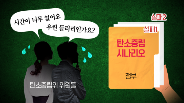 또 다른 이유도 있습니다. 위원들은 기초 자료를 주는 정부 측 전문가그룹(기술작업반)이 처음부터 '실패 시나리오' 2개를 들고 왔다고 털어놨습니다. 그나마 위원들의 반발로 탄소중립(순 배출 제로) 목표를 이루는 시나리오가 나중에 추가됐다고도 했습니다.