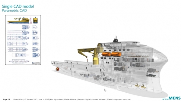 지멘스가 유연하고 신속한 선박 설계 솔루션으로 제조지출(CAPEX)뿐만 아니라 운영비용(OPEX)도 동시에 낮출 수 있는 방안을 소개했다. 지멘스 김현준 연구원은 '시뮬레이션 기반 선박 개발 방법론(Simulation Driven Ship Design)'을 주제로 웨비나 발표를 진행했다.