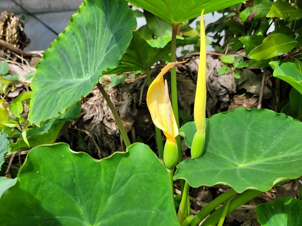 이상기후로 올해에는 전년보다 한 달 빨리 폭염경보가 울리는 등 높은 온도가 형성되면서 토란이 꽃을 피우기 시작했다.