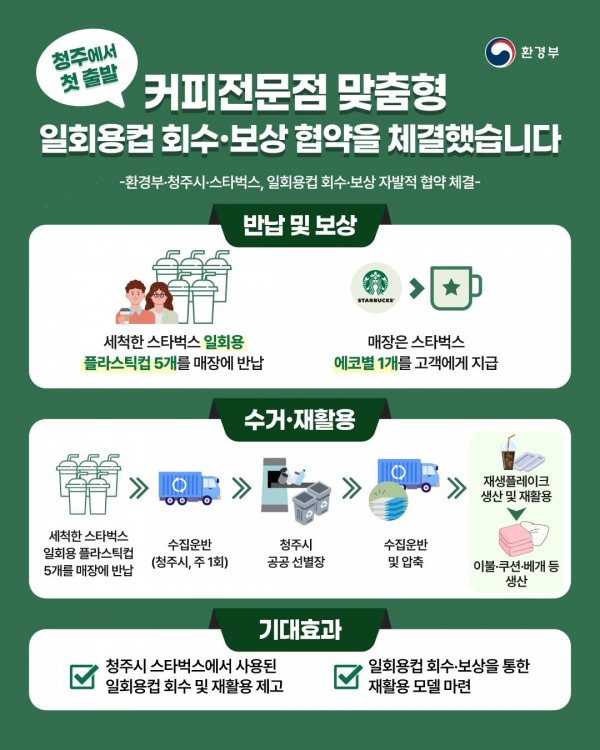 ▷ 환경부·청주시·스타벅스, 일회용컵 회수·보상 자발적 협약 체결