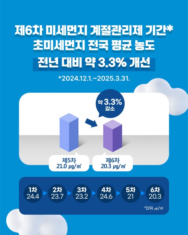 제6차 미세먼지 계절관리제 기간 초미세먼지 농도, 전년 대비 약 3.3% 개선