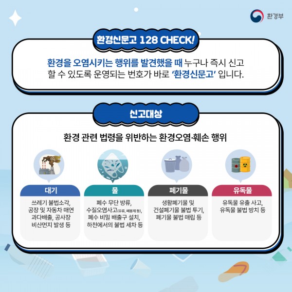 환경부는 환경 오염 시키는 행위를 발견하면 누구나 즉시 신고 할 수 있는