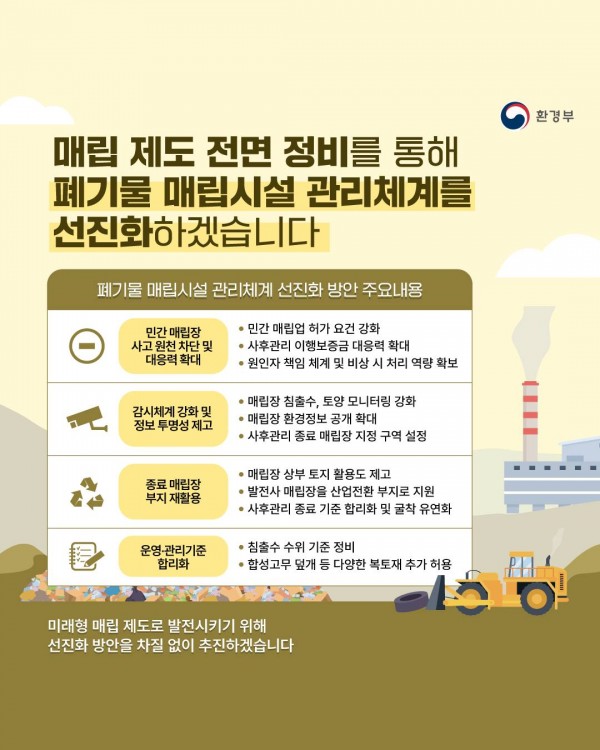 환경부(장관 김완섭)는 1월 22일 정부서울청사에서 열리는 국정현안관계장관회의겸 경제관계장관회의에서 ‘폐기물 매립시설 관리체계