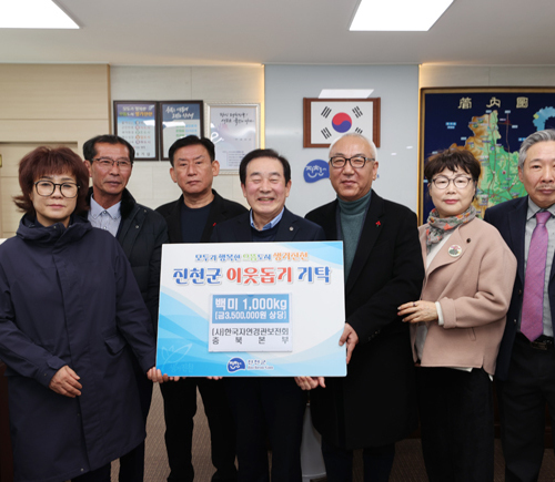 (사)한국 자연경관보전회 충북본부(본부장 송재학)는 16일 진천군청을 찾아 관내 취약계층에 전달해 달라며 백미 1천㎏을 전달했다.