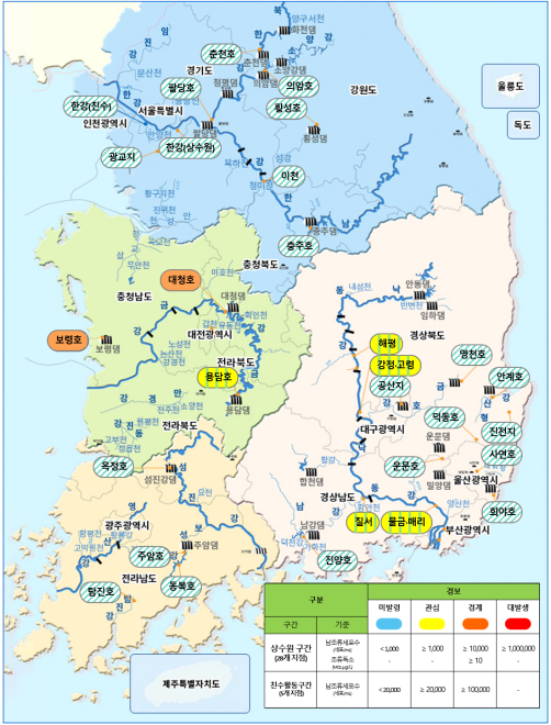 -지속된 폭염으로 대청호와 보령호에서 첫 ‘경계’ 단계 발령