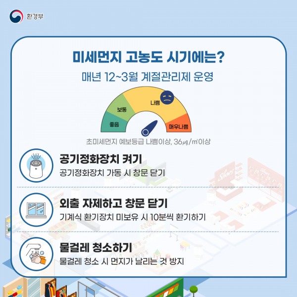 환경부(장관 김완섭)는 도서관 등 일부 다중이용시설의 실내 초미세먼지 유지기준을 강화한 ‘실내공기질 관리법’ 시행규칙 일부개정안을 12월 23일에 공포하고,