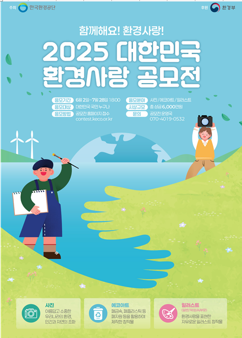 환경부 산하 한국환경공단(이사장 임상준)은 ‘2025 대한민국 환경사랑공모전’을 개최한다고 밝혔다.