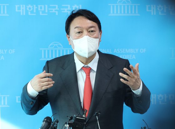 윤석열 국민의힘 대선 경선 예비후보가 8일 서울 여의도 국회 소통관에서 '고발 사주' 의혹 관련 기자회견을 하고 있다.