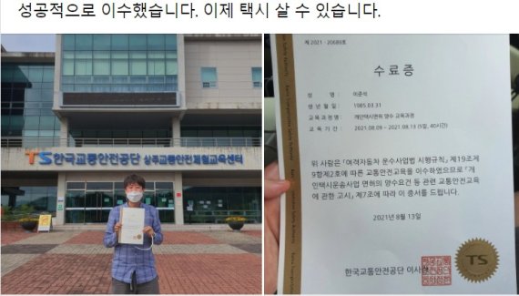 이준석 국민의힘 대표는 지난 13일 '개인택시 양수교육'을 이수, 개인택시 취득 자격을 획득한 사실을 자신의 페이스북을 통해 알렸다. 이 대표와 윤석열 캠프 등은 예비후보자 토론회를 놓고 갈등을 빚고 있다. (페이스북 갈무리)