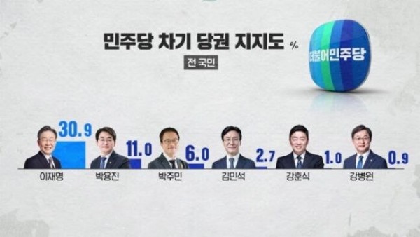 대중적 인지도 측면에선 박용진·박주민 의원이 앞선다. <에스비에스>(SBS) 의뢰로 넥스트리서치가 지난 9~10일 전국 성인 1010명을 대상으로 한 ‘민주당 차기 당대표 지지도 조사’에선 이재명 의원이 30.9%, 박용진 의원이 11%, 박주민 의원이 6%를 기록했다. 특히 예비경선 여론조사 대상을 민주당 지지층과 무당층으로 한정했기 때문에 당원 지지가 높은 박주민 의원에게 좀 더 승산이 있다는 분석이 나온다. 다만 강성 지지층의 박주민·이재명 의원 선호가 겹쳐 ‘차별화’가 쉽지 않다는 반론도 있다. 박주민 의원은 출마 선언 때부터 줄곧 이 의원과의 ‘우호적 관계’를 강조하고 있다. 박용진 의원은 이날 페이스북에서 여론조사 결과를 공유하며 “민주당의 넓은 마당에 집 나간 토끼를 돌아오게 할 사람, 박용진뿐”이라며 “진보, 중도, 보수 모두의 지지를 받는 ‘온 국민 정당’으로 민주당을 확 바꾸겠다”고 적었다. 이번 조사의 표본오차는 95% 신뢰수준에 ±3.1%포인트이며 자세한 내용은 중앙선거여론조사심의위원회 누리집을 참고하면 된다.