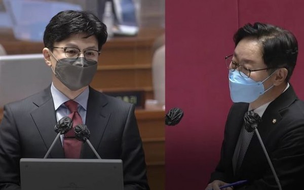 25일 국회 대정부 질문에서 가장 관심이 집중됐던 건 전·현직 법무장관들의 만남이었다. 예상대로 문재인 정부 마지막 법무부 장관을 지낸 박범계 민주당 의원과 윤석열 정부 첫 법무부 장관인 한동훈 장관은 치열한 공방을 벌였다. 이날 두 사람이 맞붙는 장면은 온라인상에서도 큰 화제를 모았다.