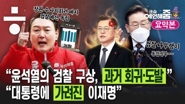 지난 14일 윤석열 국민의힘 대선후보가 사법 공약을 냈는데요. 법무부 장관 수사지휘권 폐지, 검찰 독립 예산 등이 주요 내용인데... 민주당 쪽에서는 “민주주의 파괴할지도 모르는 발상”이라며 날 선 비판을 하고 있고, 김민하 평론가도 “검찰개혁, 결국 한 발짝도 못 나가는 것”이라고 비판하는데요. ‘적폐수사 발언’ 논란에 이어 검찰 관련 공약을 낸 윤 후보의 속내는 무엇일까요?