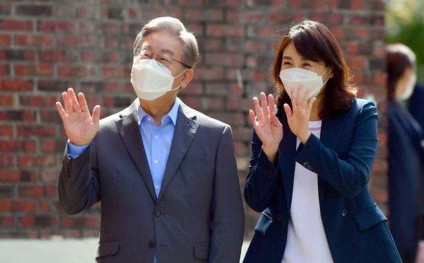 더불어민주당 대선 경선 주자인 이재명 경기지사와 부인 김혜경씨가 18일 오후 광주 남구 한 미혼모시설을 방문해 인사를 하고 있다.