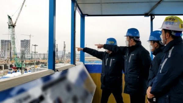 이재용 삼성전자 부회장(오른쪽에서 세 번째)이 지난 1월 4일 임직원들과 함께 경기도 평택 3공장 건설현장을 점검하고 있다.ⓒ삼성전자