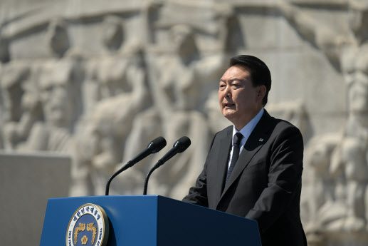 윤석열 대통령이 지난 19일 서울 강북구 국립4·19민주묘지에서 열린 제63회 4·19혁명 기념식에 앞서 기념사를 하고 있다. (사진=뉴스1)