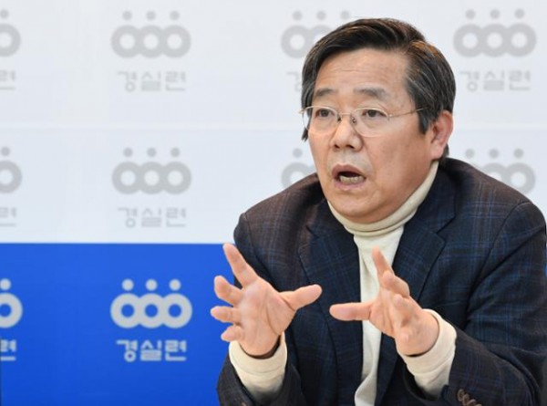 15일 서울주택도시공사(SH) 사장으로 취임하게 된 김헌동 경실련 부동산건설개혁본부장이 지난 3월 9일 한국일보와 인터뷰하는 모습.