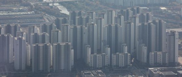 16일 오후 서울 송파구 롯데월드타워 서울스카이에서 바라본 아파트 단지 모습.