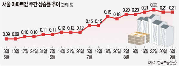 서울 아파트값이 꺾일 기미를 보이지 않고 있다. 매물은 부족한데 전셋값이 오름세를 지속하면서 몇 없는 매물을 중심으로 신고가 거래가 이뤄지는 악순환이 계속된 탓으로 보인다.