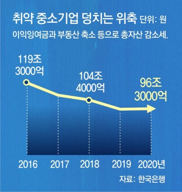외부 자금 의존도가 높은 취약기업 수가 크게 늘면서 금융 부실 리스크도 커지고 있다. 각종 금융 지원에도 불구하고 이들 기업의 재무 상황은 점차 악화되고 있다. 한국은행은 4년 이상 장기존속 취약기업들이 ‘매출 감소→영업손실 확대→자기자본 축소’의 과정을 반복하며 기업 활동이 위축되고 있다고 분석했다.