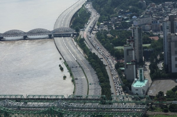 집중호우 여파로 한강 수위가 다시 높아지면서 서울 올림픽대로 가양대교~동작대교 구간이 전면 통제됐다.
